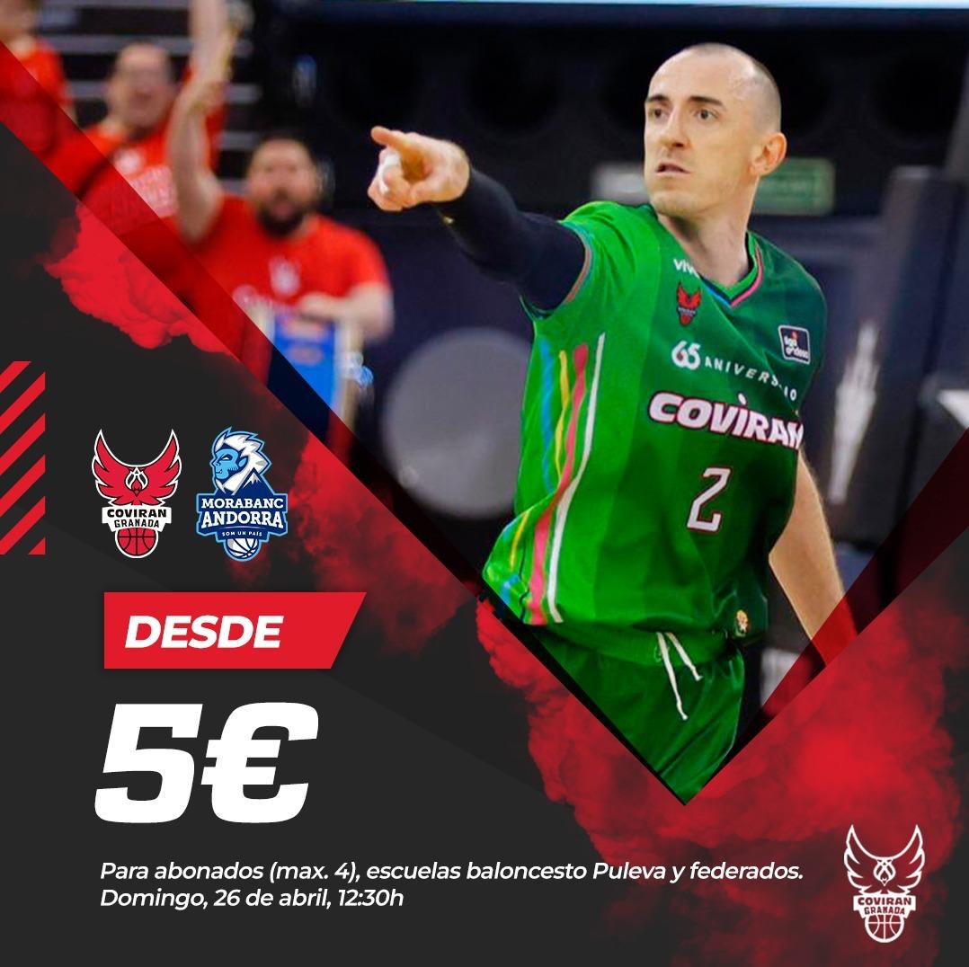 El Coviran Granada celebrará el próximo domingo el día del baloncesto federado en la provincia. El club rojinegro, que recibe al MoraBanc Andorra a las 12:30 horas en el Palacio de Deportes, pone a disposición de todos los jugadores que posean su licencia de la Federación Andaluza de Baloncesto un precio reducido en las entradas de 5 euros para disfrutar del choque.