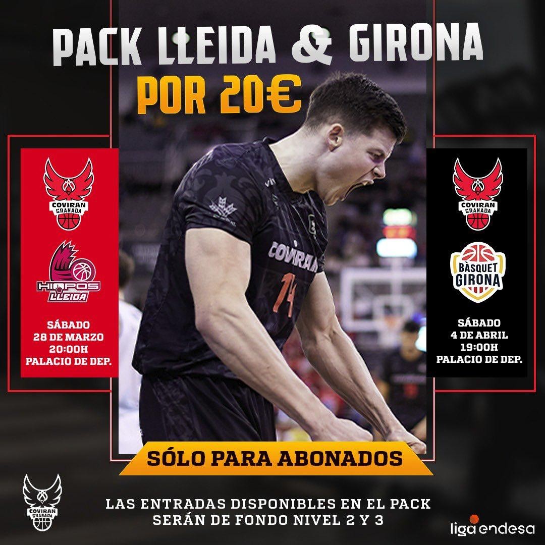 El Coviran Granada va a poner a disposición de sus abonados una promoción especial para los dos siguientes encuentros que disputará el equipo dirigido por Arturo Ruiz en el Palacio de Deportes. Los abonados podrán adquirir una entrada para cada partido por un precio de 20 euros en total.