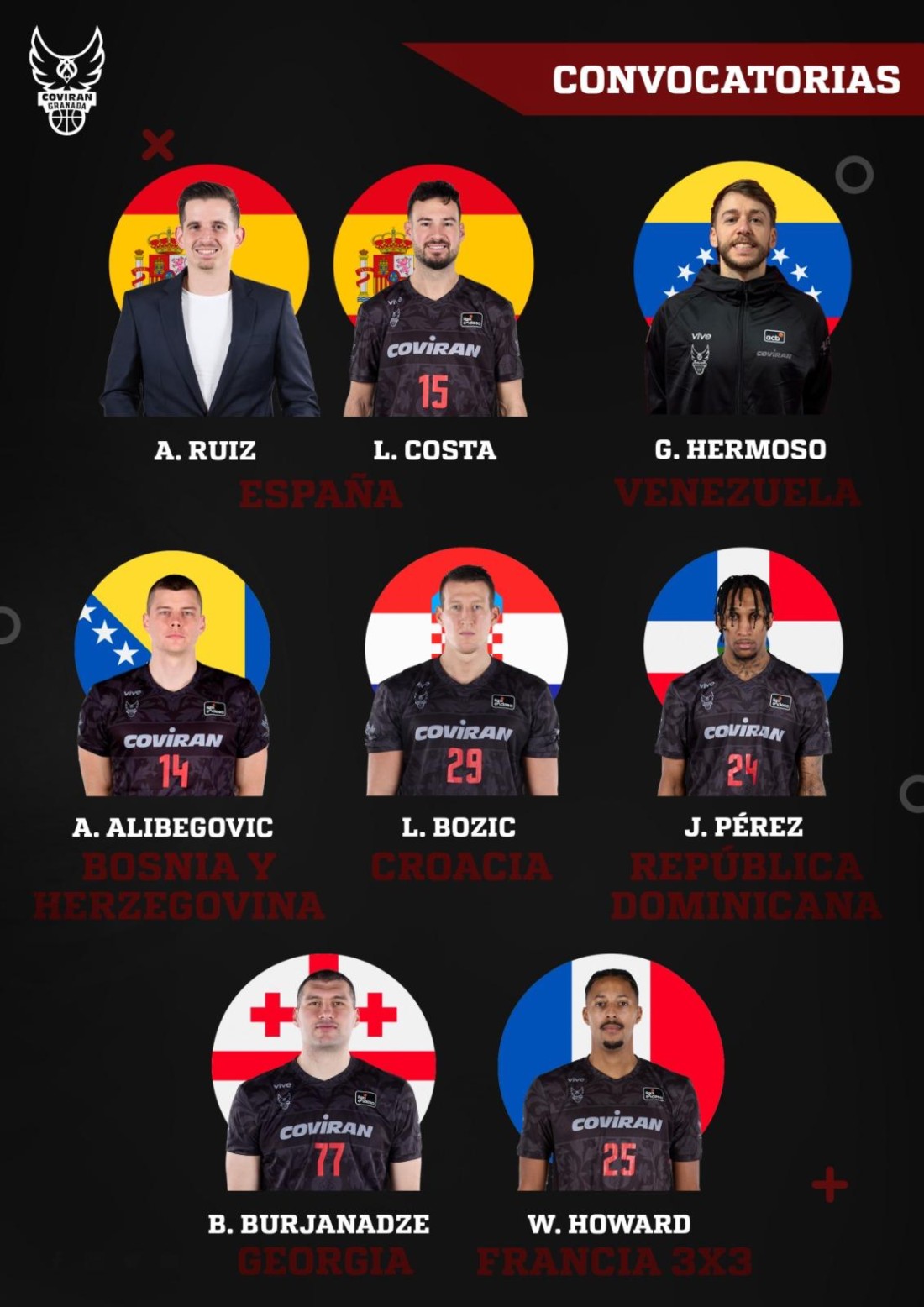 Además del base español Beqa Burjanadze vuelve a marcharse con Georgia; Luka Bozic hará la propio con Croacia; Amar Alibegovic vestirá la camiseta de Bosnia; Jassel Pérez está incluido en la lista de República Dominicana; y William Howard se marchará con la selección francesa de 3×3.