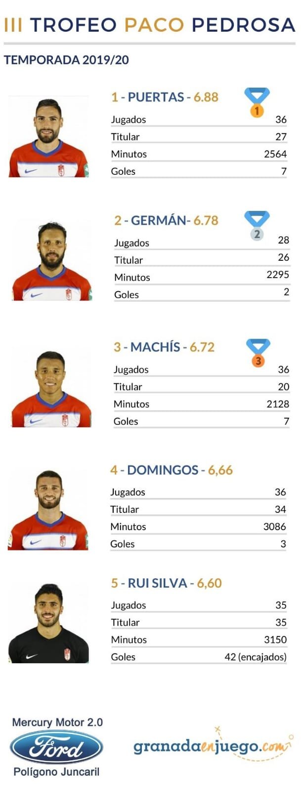 El ganador de la tercera edición del Trofeo `Paco Pedrosa´, que otorga Granada En Juego con el patrocinio de Mercury Motor 2.0, al mejor jugador del Granada CF durante la temporada regular, aún no había llegado a las manos de su dueño por las circunstancias que rodean el panorama social y deportivo actualmente.