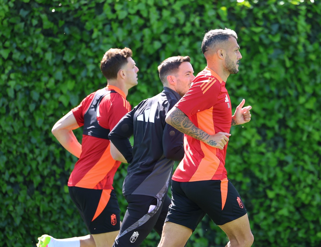 Sin Oscar, Juanma ha sido el único representante del filial que ha estado trabajando con el primer equipo, que ha comenzado la mañana con ejercicios de pases y rondos antes de comenzar con la carga principal de trabajo.