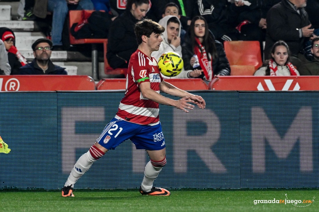Poco a poco el Granada se iba estirando, ganando presencia en el área rival, amenazando a Ezkieta por medio de Arnáiz, que estaba afinando su puntería con varios disparos que se fueron desviados. En defensa, dándole continuidad a lo visto en Cádiz, los rojiblancos se mantenían firmen, maniatando con solvencia a los atacantes rivales.