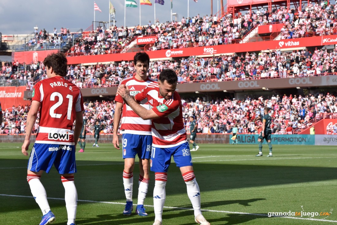 En la segunda mitad, como en las anteriores jornadas, el Granada tiró de oficio y anestesió el encuentro, maniatando al rival, que intentaba buscar la portería de Astralaga con insistencia pero sin el acierto necesario para romper la defensa nazarí, que resistía sin pasar grandes apuros, demostrando que el equipo se ha convertido en un conjunto difícil de batir, muy sólido y comprometido en todo momento.