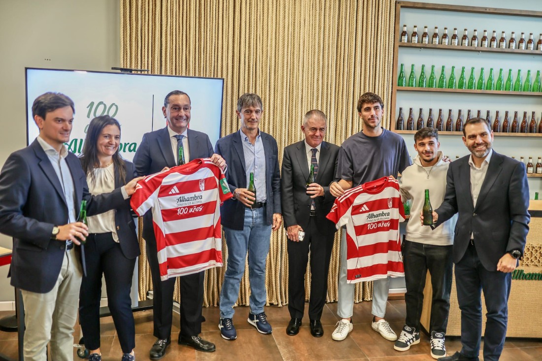 Durante la presentación, Alfredo García Amado destacó: “Qué bonito que celebremos el centenario con este patrocinio. Es un orgullo poder llevar en la camiseta un emblema de nuestra ciudad como es Cervezas Alhambra”.