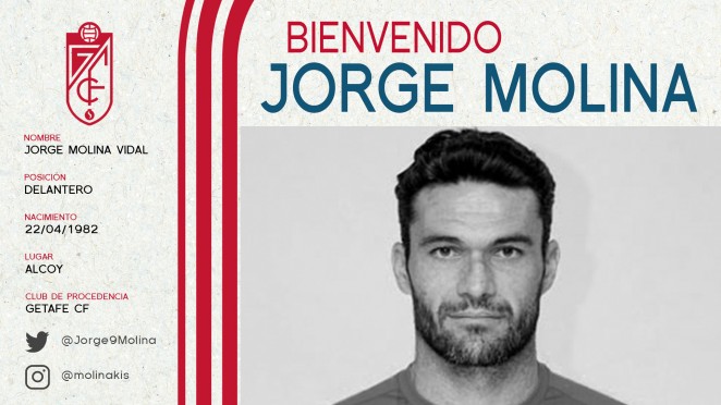 El de Jorge Molina es un nombre que no ha aparecido a lo largo del verano en la agenda de fichajes del Granada pero que, en el día de ayer, sorprendía con su inminente llegada a la entidad nazarí, libre desde el Getafe. Y, finalmente, ha sido durante la mañana de hoy cuando el club ha hecho oficial el destacado refuerzo para la parcela ofensiva del equipo de Diego Martínez.