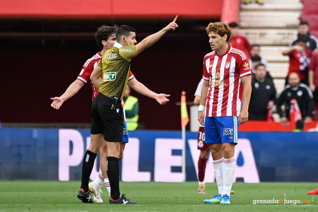 Con el minuto 90 cumplido, el Granada luchaba por resistir y llevarse la victoria, momento en el que Jorge Pascual fue expulsado por dirigirse al linier tras un lance del juego, una roja fulminante que dejaba a los rojiblancos con un jugadores menos para los últimos minutos.