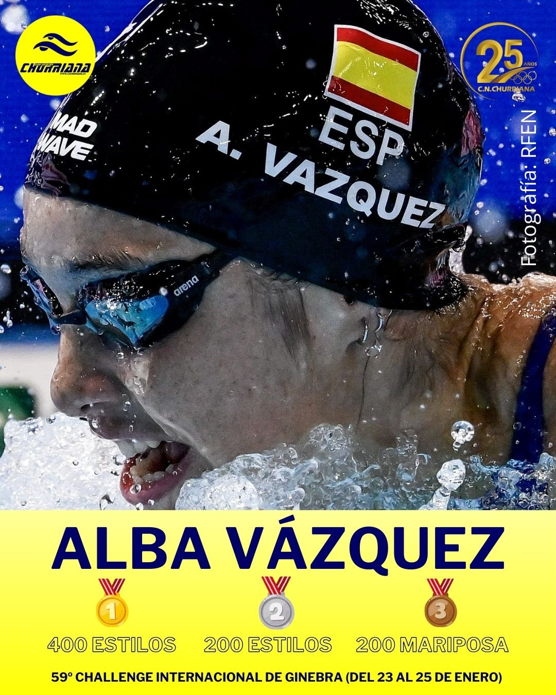Espectacular Alba Vázquez en el Meeting Internacional de Ginebra (Suiza), consiguiendo 3 medallas: oro en 400 estilos, plata en 200 estilos con Mejor Marca personal de siempre y bronce en 200 mariposa.