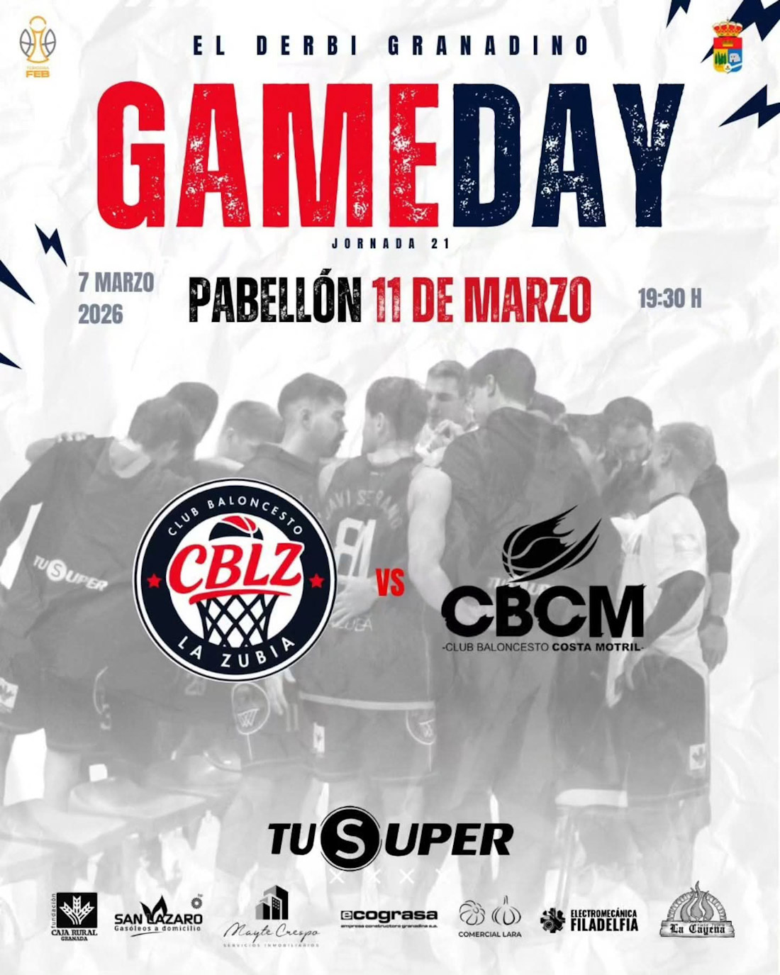 El pabellón 11 de marzo acogerá el duelo entre Tú Súper CB La Zubia y Molina Olea Costa Motril