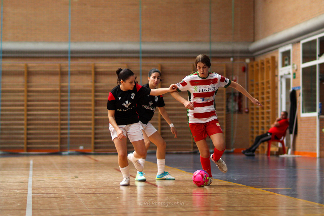 Desde el pitido inicial, las nazaríes impusieron su ritmo con una presión alta y efectividad ofensiva inmediata, logrando marcar dos goles casi consecutivos en los primeros cuatro minutos, el primero obra de Ana Maldonado y el segundo tras un error defensivo que resultó en un autogol de Belmonte. Pese a este comienzo favorable, el Globalcaja Albacete no se dejó dominar el resto del primer tiempo y ofreció una sólida resistencia. Su capacidad para ajustar tácticamente permitió dar la vuelta al marcador, llegando a estar 2-3 a favor al descanso, lo que situó el encuentro en una dinámica de máxima incertidumbre y emoción.