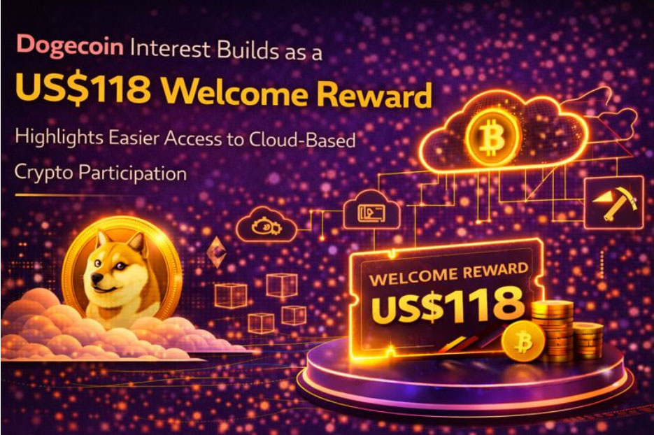 El interés por Dogecoin crece mientras una recompensa de bienvenida de 118 dolares destaca un acceso más fácil a la participación cripto basada en la nube