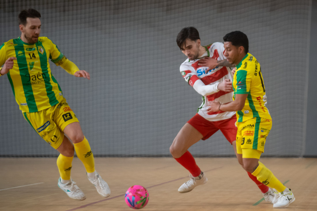 El arranque del encuentro evidenció el espectacular nivel de uno de los mejores equipos de la última década en España. Los amarillos se adelantaron en el primer minuto, con un tanto de Joao Salla en un meritorio tiro a la esquina de Germán. Un gran chut de Eloy Rojas dio el 0-2 al Jaén en el 4’, y un tanto de Bynho tras una pared con Míchel en el 10’ dio el tercero a los visitantes. El dominio jienense fue claro en los primeros minutos, a pesar de alguna intentona del Sima que estuvo cerca de terminar en gol.