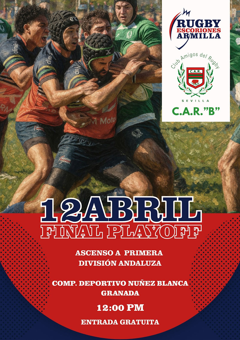 El Complejo Deportivo Núñez Blanca, en el barrio granadino del Zaidín, será escenario este domingo 12 de abril de la final del play-off de la segunda división regional masculina de rugby, que enfrentará a Rugby Escoriones Armilla y CAR Sevilla B, los dos equipos más destacados de la temporada en Andalucía.
