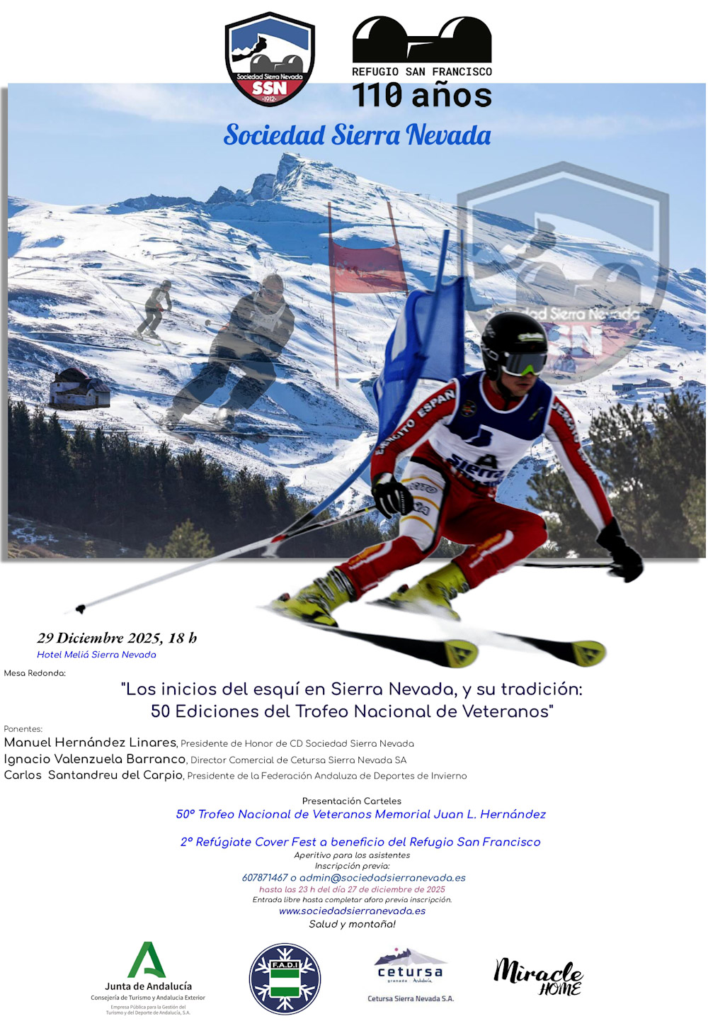 Durante el acto se presentará el cartel oficial del 50º Trofeo Nacional de Veteranos y el Refúgiate Cover Fest, un festival musical solidario en beneficio del Refugio San Francisco, considerado la cuna de los deportes de invierno en Sierra Nevada.