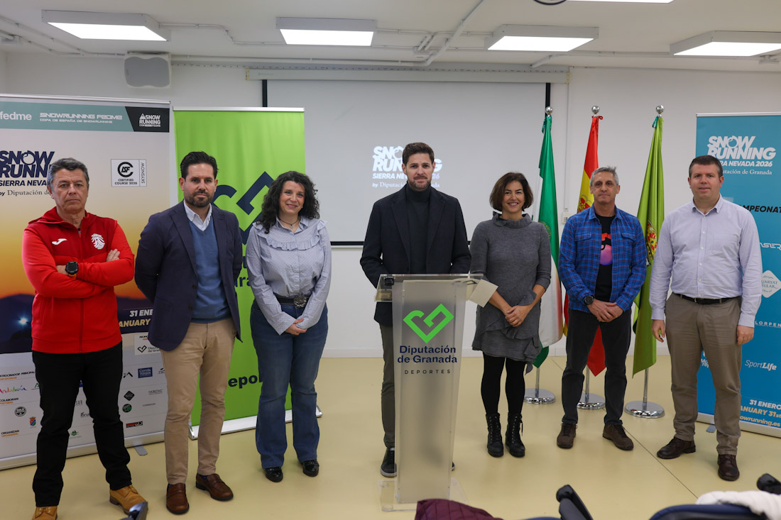 Granada volverá a situarse en el epicentro internacional del SkySnow running con la celebración de la 15ª edición de la Snow Running Sierra Nevada by Diputación de Granada, que tendrá lugar el próximo 31 de enero. La prueba, considerada la más concurrida del mundo en su modalidad, reunirá a cerca de 1.000 corredores bajo las estrellas en un escenario único de alta montaña invernal, consolidando a la provincia como referencia para las federaciones internacionales de deportes de montaña. El diputado de Deportes e Instalaciones Deportivas, Eric Escobedo, que ha estado acompañado por el delegado de Turismo, Cultura y Deporte de la Junta de Andalucía en Granada, David Rodríguez, la directora de Relaciones Institucionales, Sostenibilidad y Actividades de Sierra Nevada, María José Rienda, el alcalde de Monachil, José Morales, representantes de las federaciones andaluza y española de montaña y organizadores de la prueba, ha subrayado que “esta competición simboliza la apuesta firme de la institución provincial por los grandes eventos deportivos que proyectan la imagen de Granada al mundo, combinando excelencia organizativa, seguridad y respeto por el medio natural”.