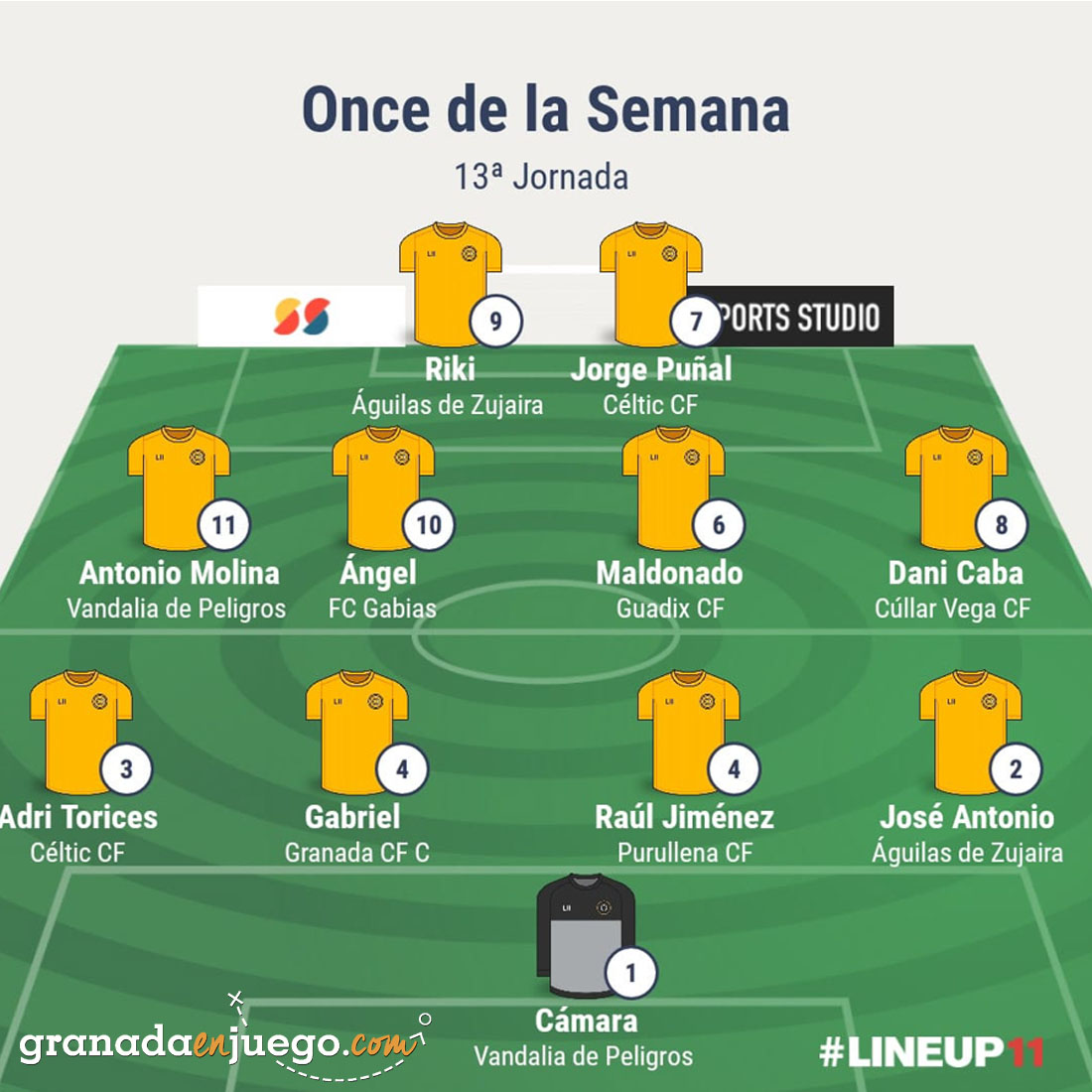El Once de la Semana de la jornada 13 destaca el excelente rendimiento de los jugadores de Águilas de Zujaira, Vandalia y Céltic, que aportan dos futbolistas al equipo ideal.