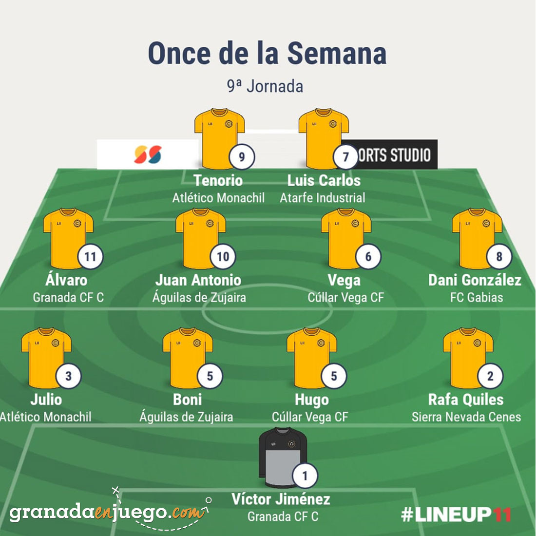El Once de la Semana de la novena jornada de la Primera División Andaluza pone en relieve el destacado rendimiento de los futbolistas de Granada CF C, Cúllar Vega Águilas Zujaira y Atlético Monachil, los equipos más protagonistas al aportar cada uno dos jugadores al equipo ideal.