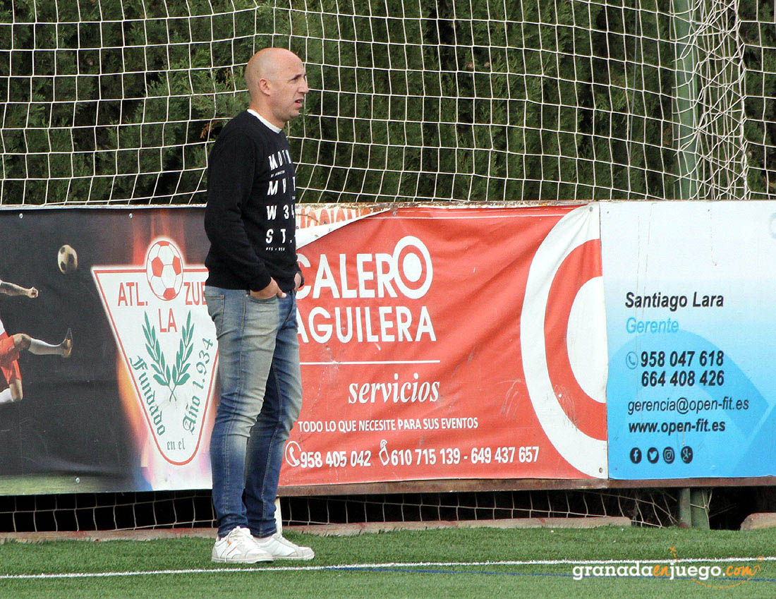 Óscar Gómez, entrenador del Cúllar Vega CF, durante un partido (J. PALMA)