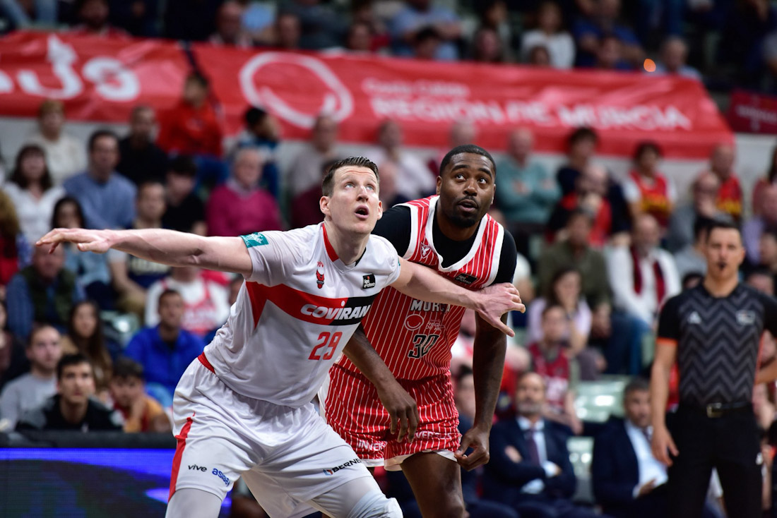 Una penetración que acabó con canasta de De Julius dio paso al 33-27. Sin embargo, el conjunto rojinegro fue capaz de levantarse de ese bajón y anotar cuatro puntos seguidos para llevar al 33-31 y provocar un tiempo muerto de Sito Alonso. Un lanzamiento de tres puntos de Jassel Pérez dio alguna esperanza al poner el 35-35, pero a partir de ahí sobrevino un bache de consideración. El físico de los locales se impuso en muchos momentos y el Covirán sufrió en ese aspecto. Arturo Ruiz tuvo que pedir un tiempo muerto con 39-35 y no sirvió de nada, porque el conjunto murciano tomó la directa y llevó al 43-35 con un parcial de ocho puntos seguidos. Bozic hizo su trabajo habitual y provocó algunas personales en la pintura, pero era necesaria la aportación de más jugadores para sostener el ataque. De Julius y Nakic acribillaron desde fuera con sus triples y se llegó al 6-45, aunque después dos tiros libres anotados por Valtonen hicieron llegar al descanso con 60-47. Había encajado demasiados puntos el equipo granadino y eso era un problema con necesidad de resolver para meterse en el partido.